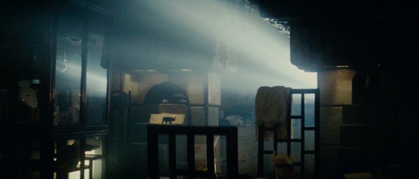 Deckard is a figure steeped in seclusion: When we meet him he is living by himself in a quiet, lightless apartment that gives off a claustrophobic resonance. Ford’s character is very much a loner, a disagreeable antihero caught up in a busy haze that he clearly has no time for. Light has to fight tooth and nail to get some air time, otherwise darkness and shadow loom large.