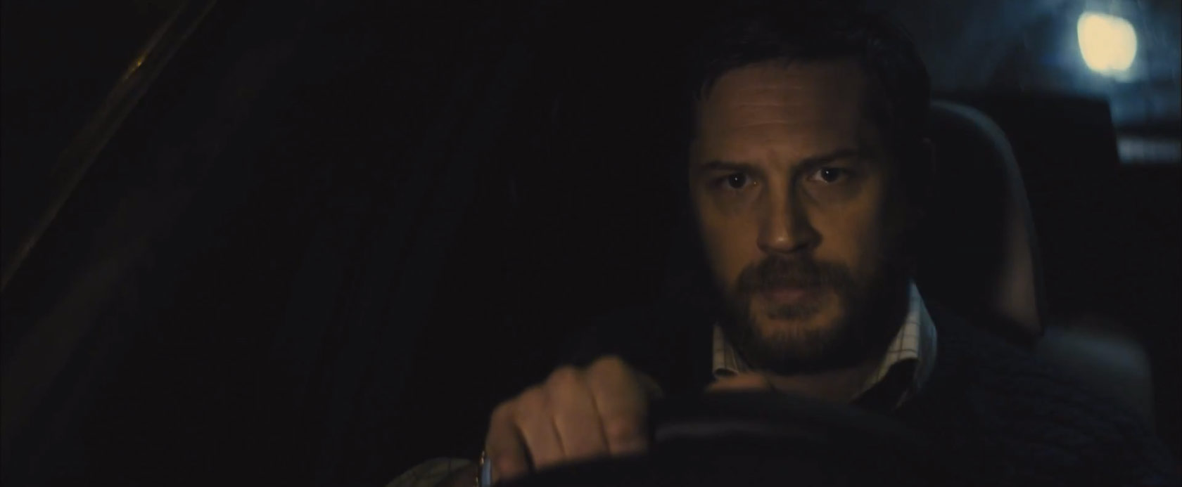 Locke is about as ambitious as any film can get within the confines of a car and boasting a solitary character hampered by a snivel-inducing cold. Plot doesn’t really exist, at least not in its customary tangible form that encourages the camera to follow the actions of different people, to different places, in order to relay new actions. Rather here, any quintessential plot twist or narrative advancement lies at the mouth of Tom Hardy, whose words and facial expressions both have a defining hand in dictating every element of the film. At its core then, in order to be a success Locke perilously relies on a compelling central performance. And it certainly gets one.